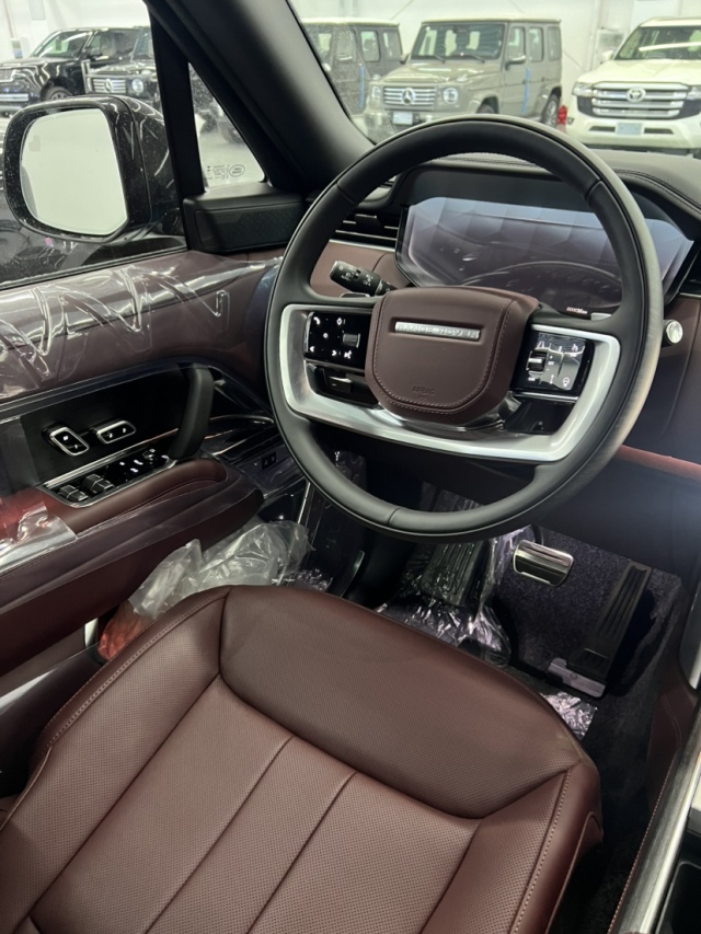 25款欧版路虎揽胜3.0柴油模范标轴 色彩:黑/石榴红 现车! 出产日期25年5月 装备: 23寸熏黑轮毂 阴影外观套件 鲨鱼腮传承标识 黑色刹车卡钳 双透镜数字大灯 整车双层夹胶玻璃 动态底盘驾驭 黑桦木内饰面板 SV桃木方向盘 1680瓦英国之宝高档音箱 24项电动座椅调理 前排座椅通风加热按摩 二排座椅通风加热 二排行政座椅 半苯胺真皮座椅 发光安全带卡扣 二排5变4电动扶手 大号飞翼头枕(带音响) SV定制全扩展真皮 SV真皮外表台 SV真皮内顶 SV高绒定制脚垫 空调PM.2.5空气净化 HUD昂首显现 流媒体后视镜 发光迎宾踏板 驾驭员状况监测 二排电动遮阳帘 四区空调 后备箱电动遮物帘 咖啡桌便携式空间隔板 前风挡玻璃加热 热衰减风挡玻璃 方向盘加热 加热玻璃水喷头 主动泊车 标配:雷达测距,ACC自适应巡航,环影印象,底盘透视,底盘升降,滑动全景天窗,电吸门,涉水感应,盲点监测,悉数座椅加热,手机无线充电,全地势反馈系统,后轮7.3转向。 贵宾专线: 张司理 微信同号